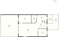 Feriehus for 4 personer er indrettet med stue / fuldt udstyret køkken i et. Soveværelse med 2 enkeltsenge og et soveværelse med 2 køjesenge, hvor underkøjen er 100 cm bred.